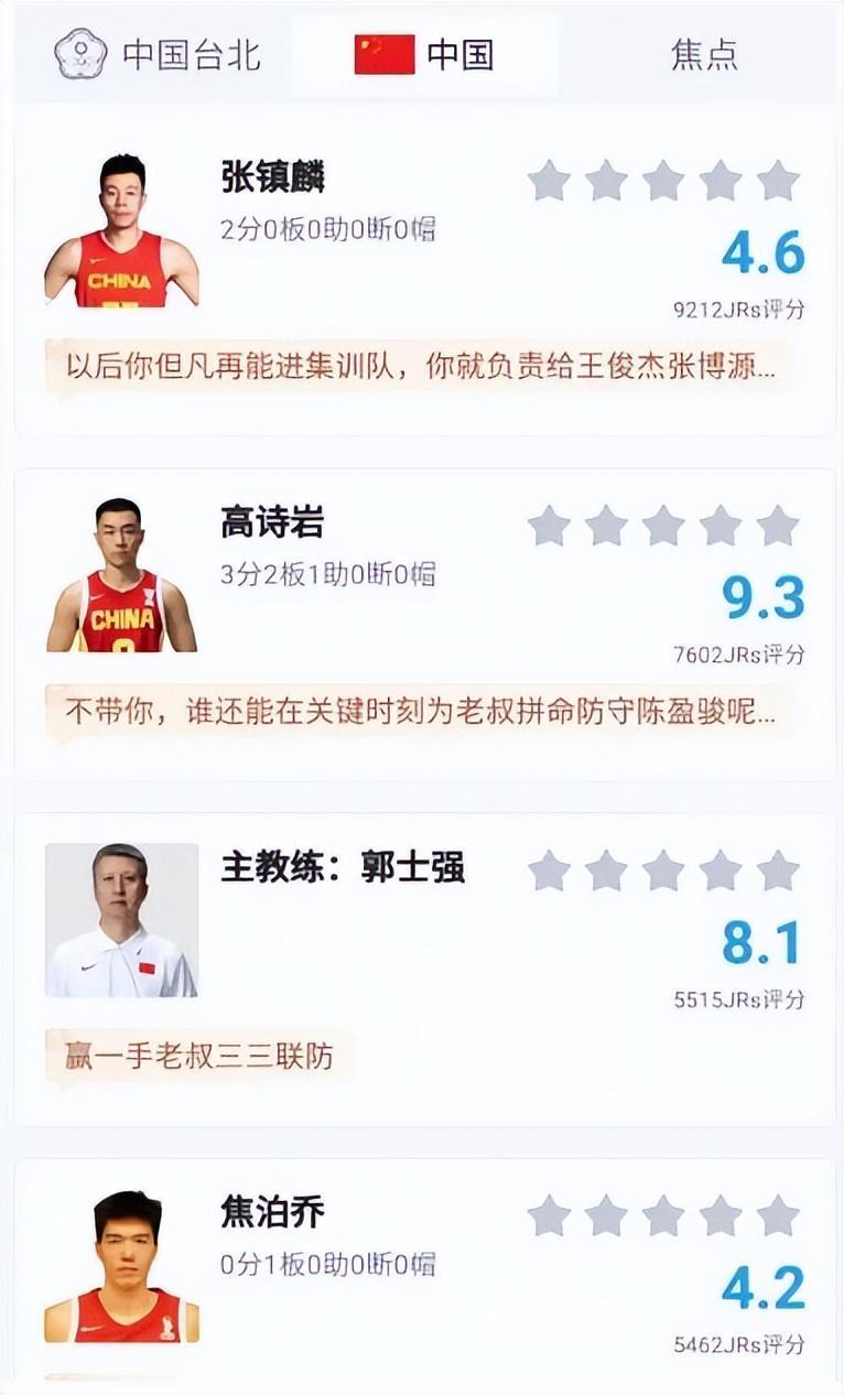 乐鱼体育入口-中国男篮逆转台北,李弘权正负值+21,赛后评分出炉,张镇麟4.6分